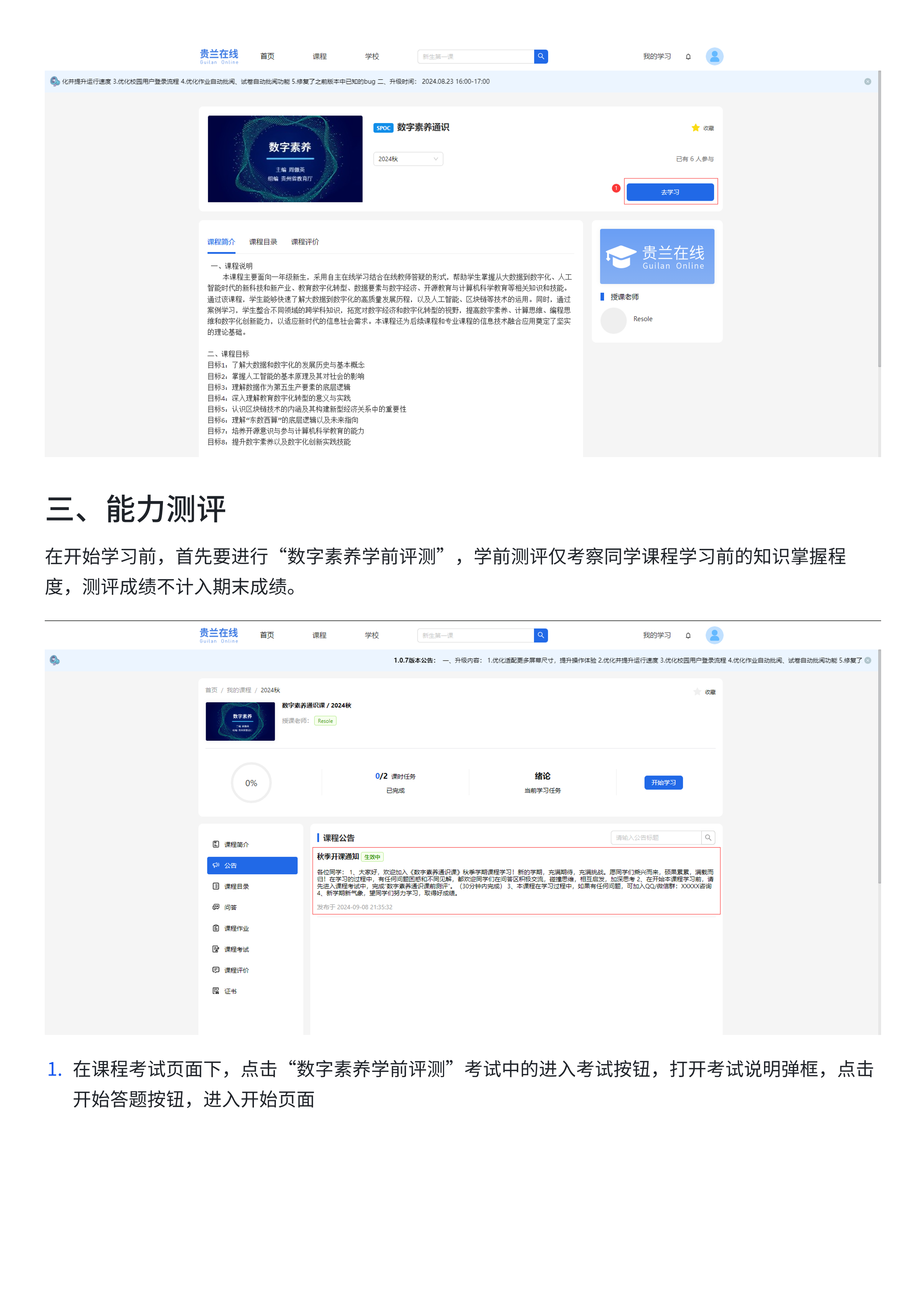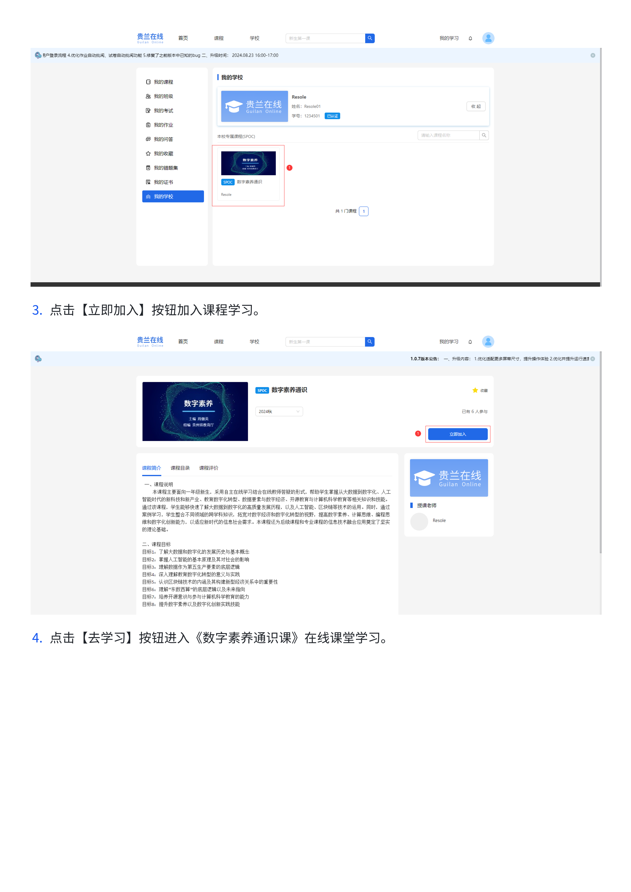 《数字素养通识课》学生web端使用手册